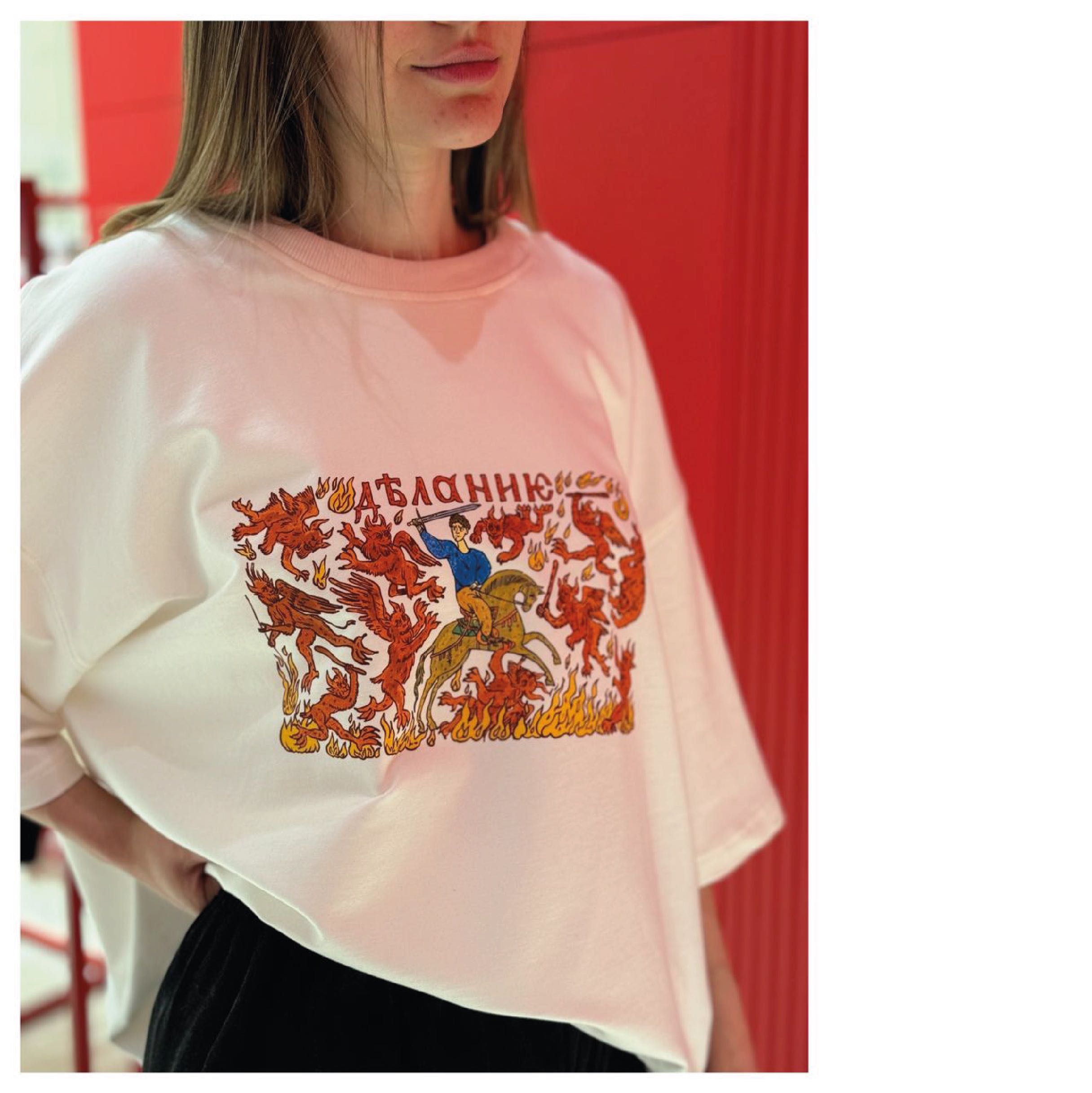 Через графику (принты) нащупываем и формируем новый русский стиль, опираясь на то, что было когда-то популярно (или не очень), что было частью визуального языка на тех территориях, которых проживаем. Во времени не ограничиваем себя десятилетиями и веками, опираемся как на остатки советской айдентики и копаем вплоть до иллюминированных рукописей 15-16 веков.